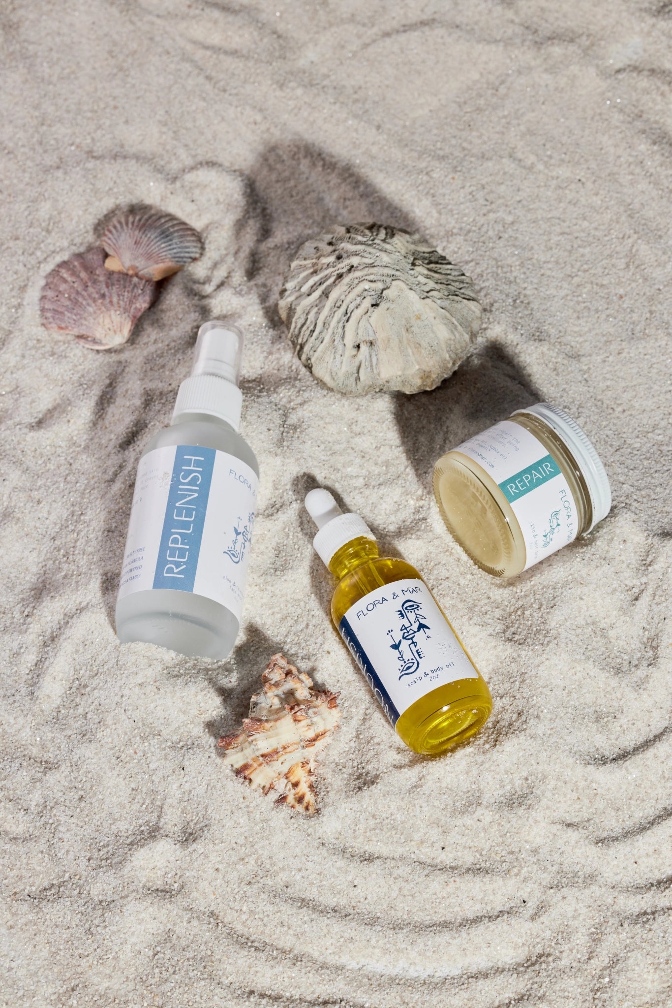 At Flora & Mar, we've embraced an Ayurvedic approach and carefully select botanical ingredients for their unique benefits to protect, rehydrate, and nourish the needs of your skin and hair.